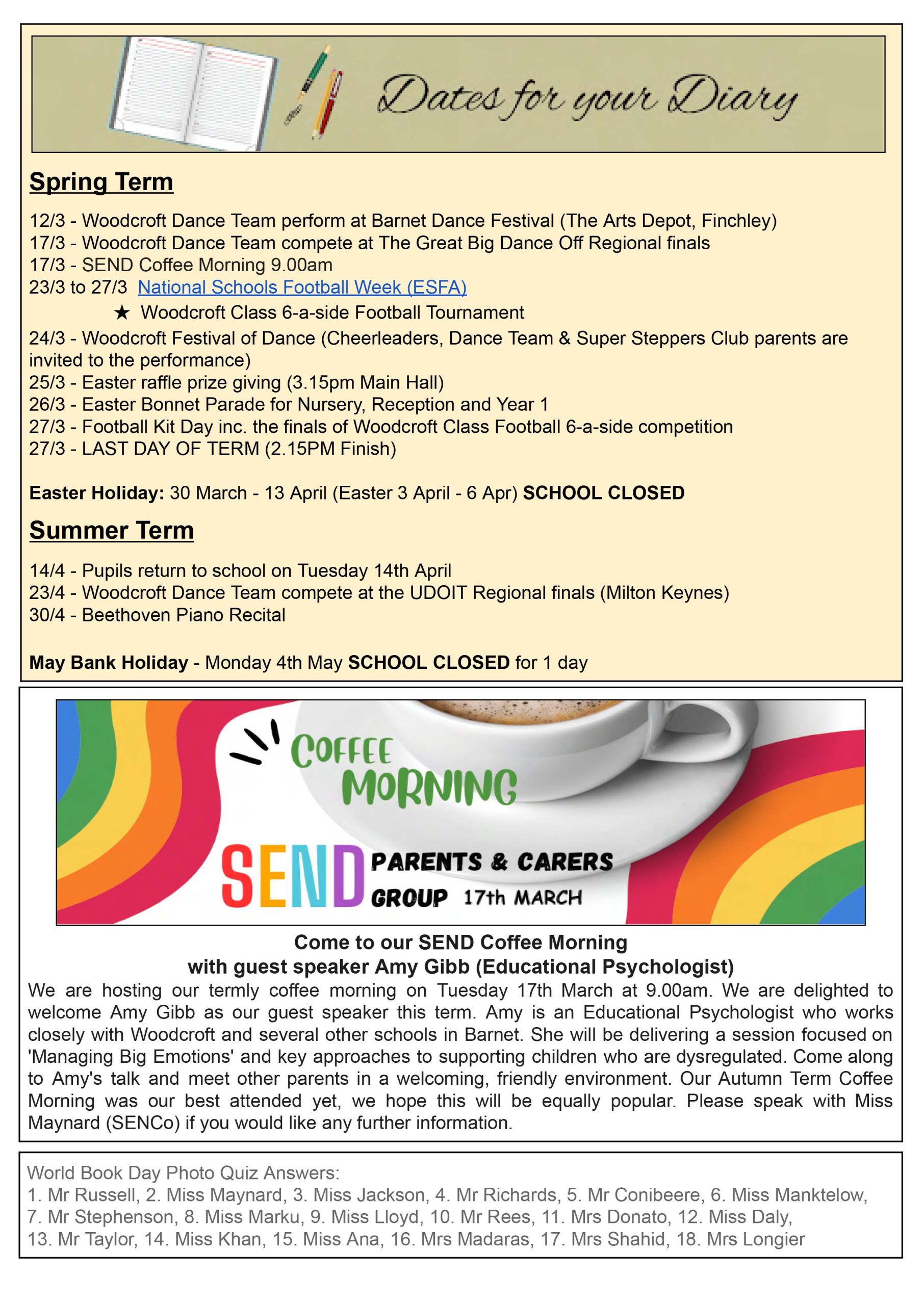 This week’s newsletter has everything you need to know about our Book Week, Litter Squad poster winners, Barnet Council BACE holiday activities, our road safety awareness project and lots more!