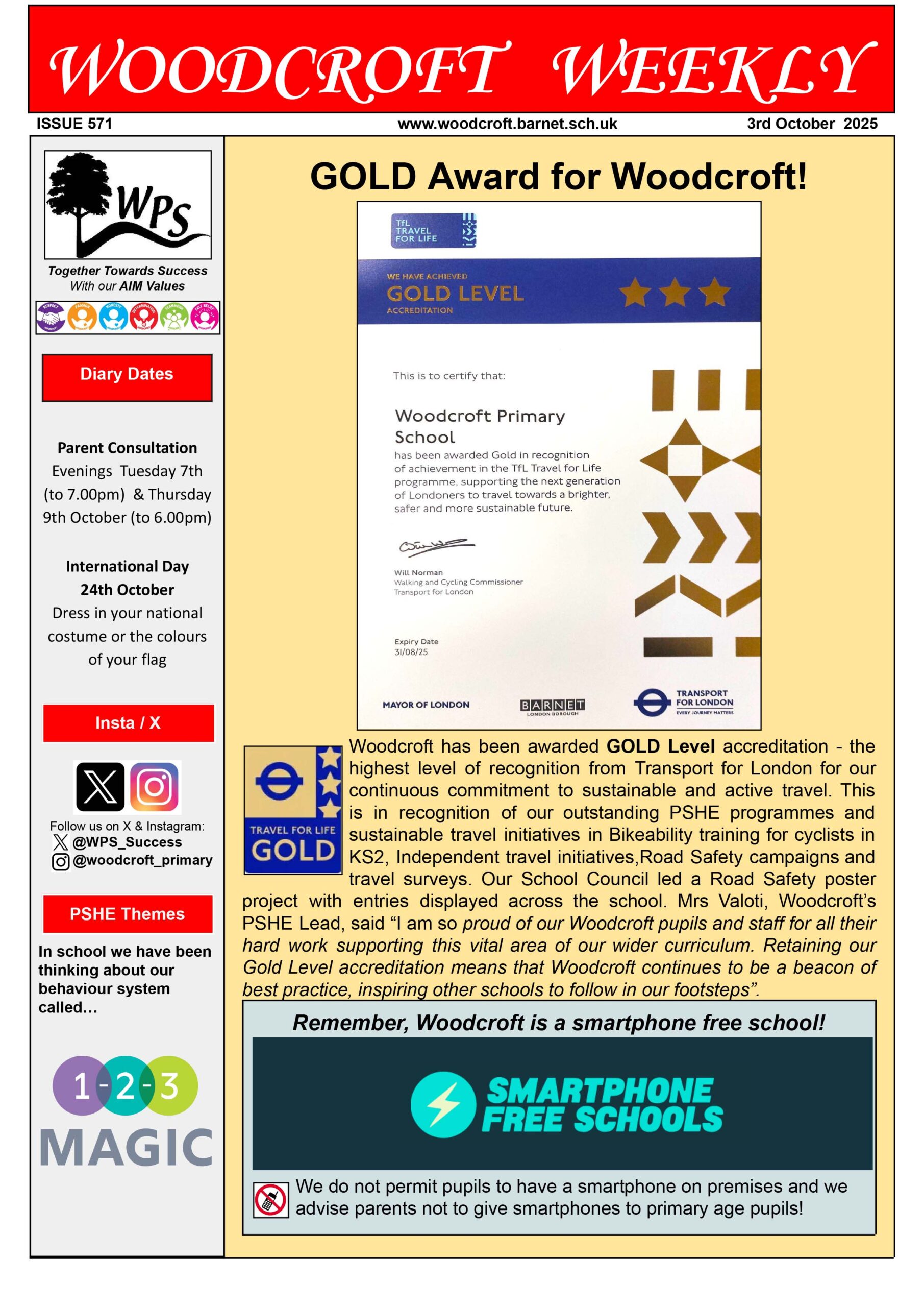 It was another successful week for Woodcroft with the announcement that we have received the prestigious accreditation, TfL Gold! This status is in recognition of our outstanding PSHE programmes and sustainable travel initiatives that we run, such as Bikeability training for cyclists in KS2.