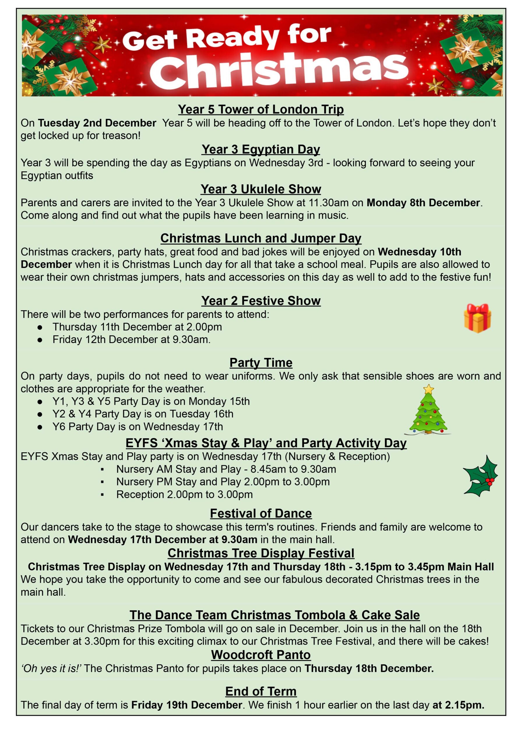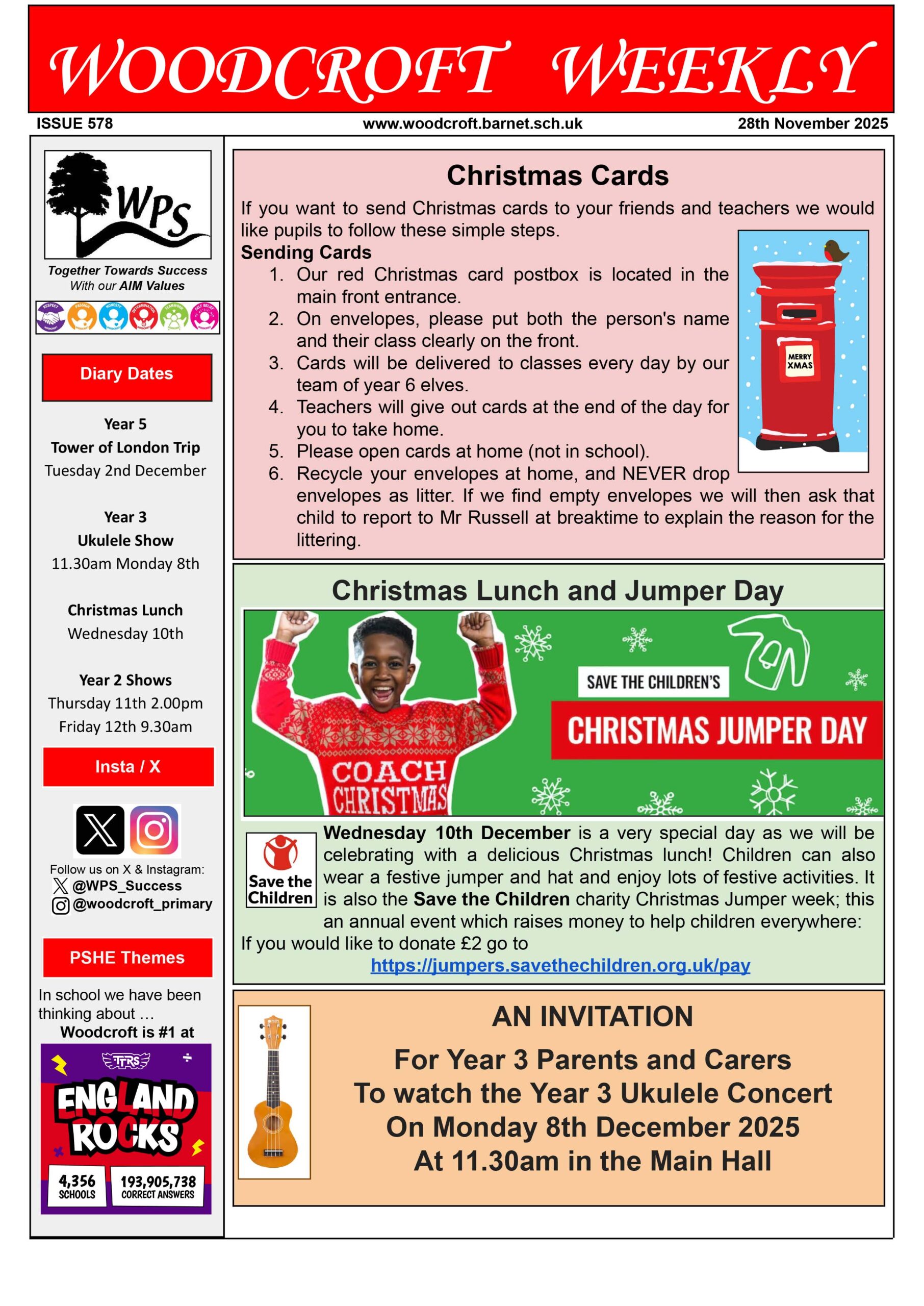 The school festive season is almost upon us so make sure you keep up to date with all things Christmas at Woodcroft by reading a copy of the Woodcroft weekly news!