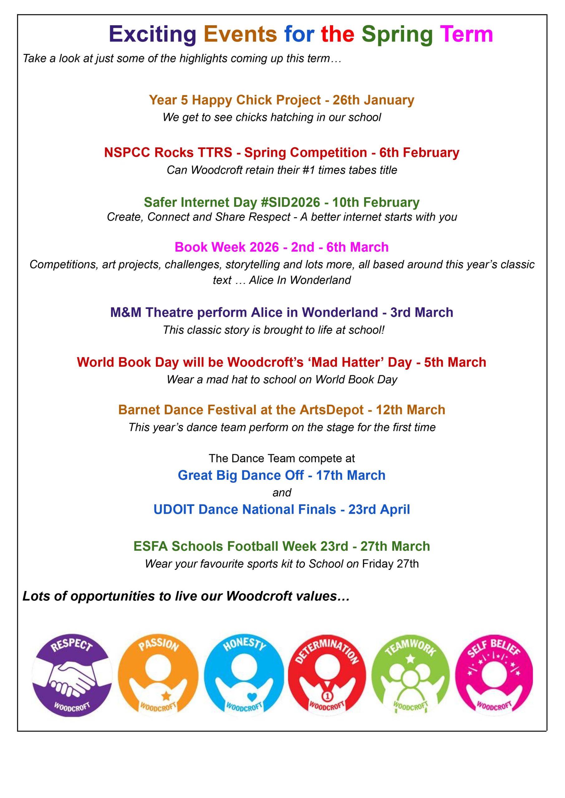 Read about our successes, and check out some of the exciting events planned for this term, by downloading your own copy of Woodcroft Weekly ISSUE 581