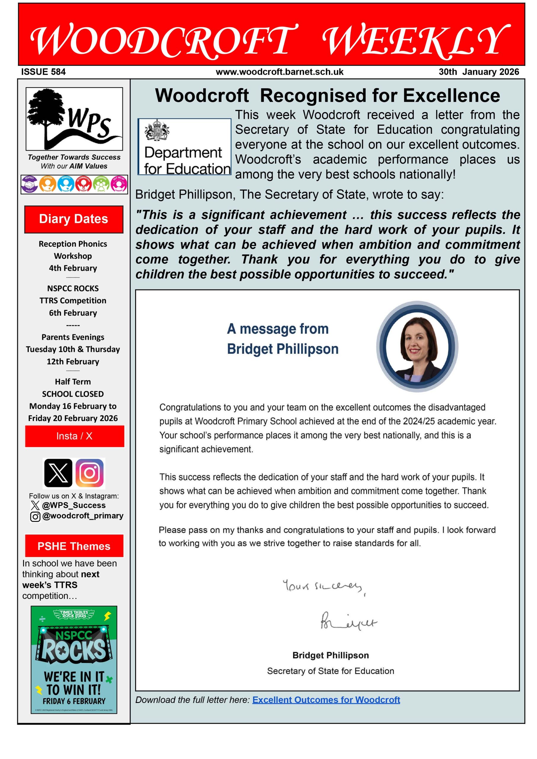 We were honoured to receive a letter from the Secretary of State for Education, Bridget Phillipson, congratulating us for excellent results that place Woodcroft amongst the very best schools nationally!